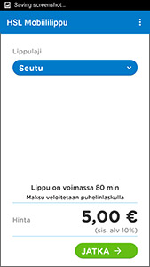 Tilaa HSL Mobiililippu sovelluksella haluamasi alueen kertalippu.